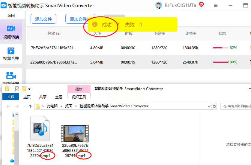 6. 转换完成后,软件会弹出提示框,点"打开文件夹"就能直接看到转换好的MP4文件,效果和原文件比几乎没差别,亲测超稳!