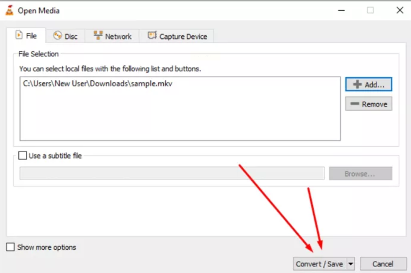 2. 打开VLC,别急着播放视频。注意看左上角的菜单栏,点击【媒体】这一项,在下拉菜单中,选择【转换/保存】。还有一个更快的快捷键方法,就是同时按下键盘上的【Ctrl + R】键,也能直接打开这个功能窗口。