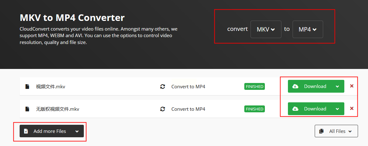 3. 点击「选择文件」上传mkv视频,支持同时拖入5个以内文件