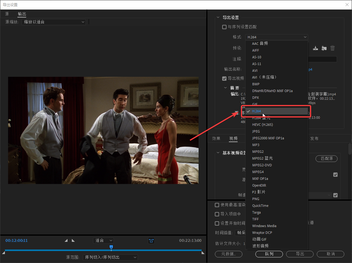 - 视频编码:H.264,预设选择「匹配源-高比特率」