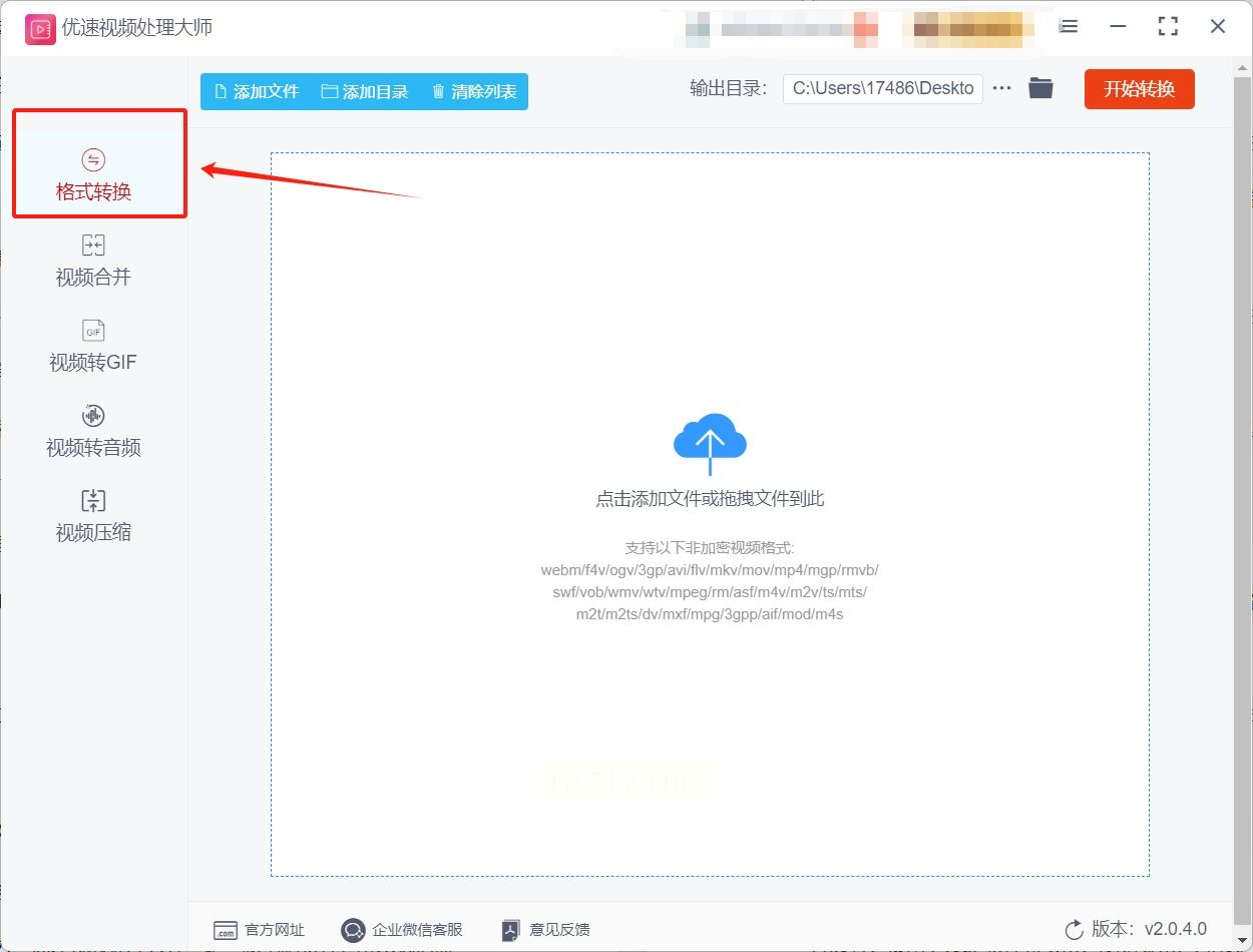 打开软件后,主界面选"格式转换",然后点击左上角的"添加文件",把要转换的WMV文件加进来(支持批量拖放)。