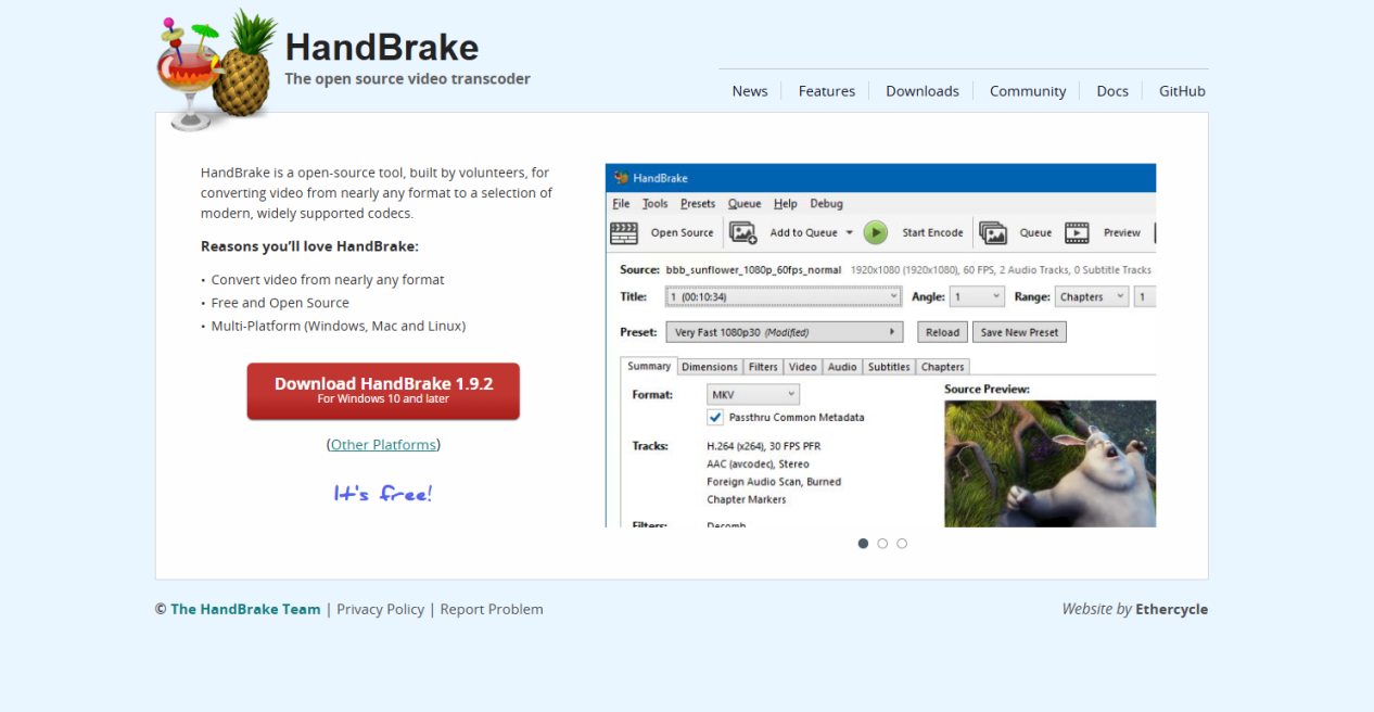 HandBrake是一款开源视频转换工具,支持10余种编码格式,包括H.265、VP9等高压缩格式。它能批量合并100个文件,4K视频压缩率可达70%且画质损失不超过3%,同时支持Windows、Mac和Linux系统,兼容性极强。