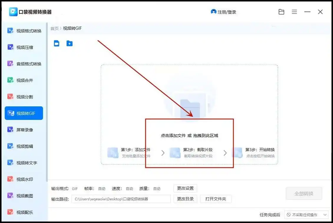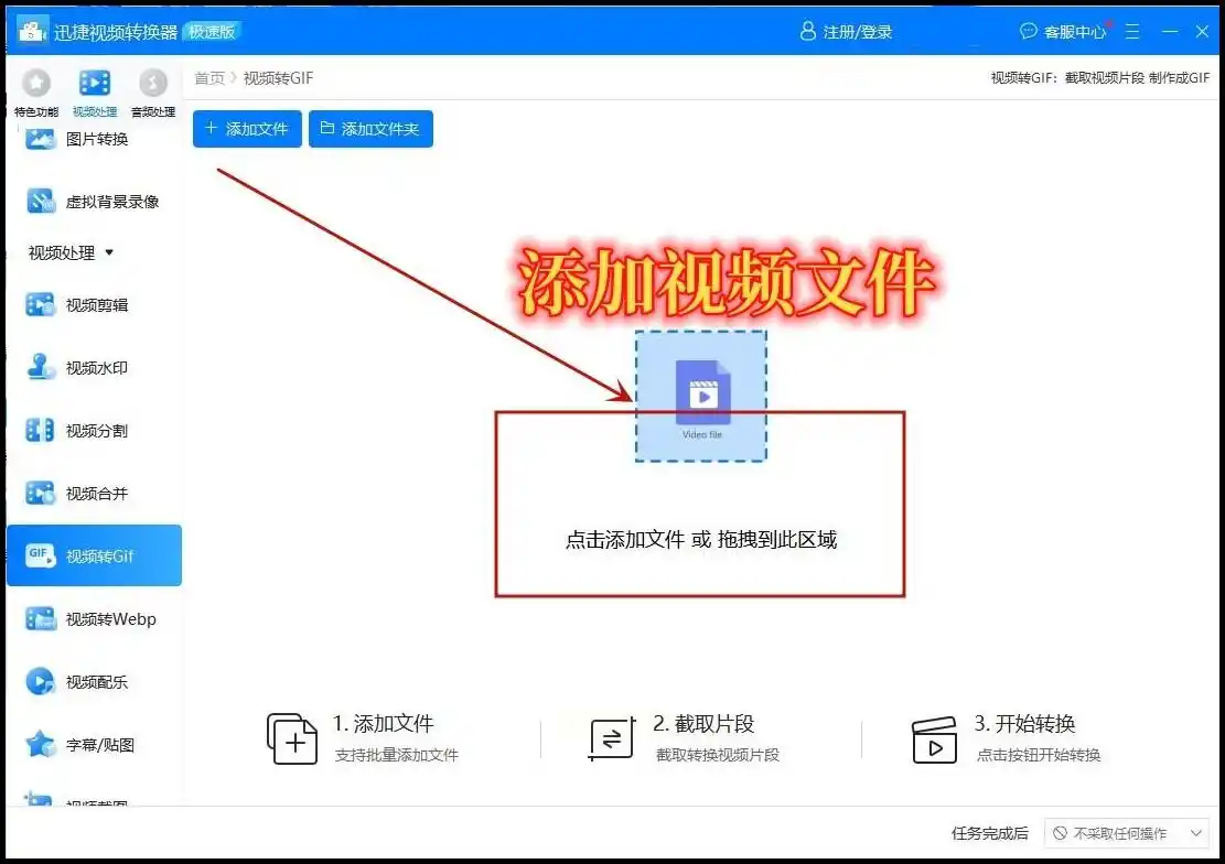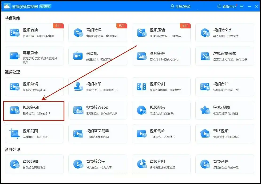 步骤一:启动软件后,在主界面选择“视频转GIF”功能模块,该功能兼容包括WebM在内的数十种常见视频格式。