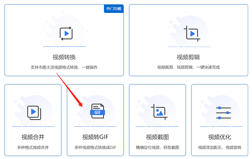 步骤一:在软件首页选择“视频转GIF”功能入口。