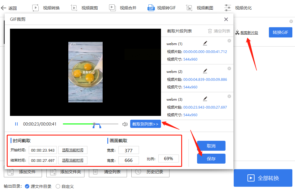 步骤三:利用内置剪辑工具截取所需片段,并可自定义GIF的尺寸与宽高比例,灵活适配不同平台要求。