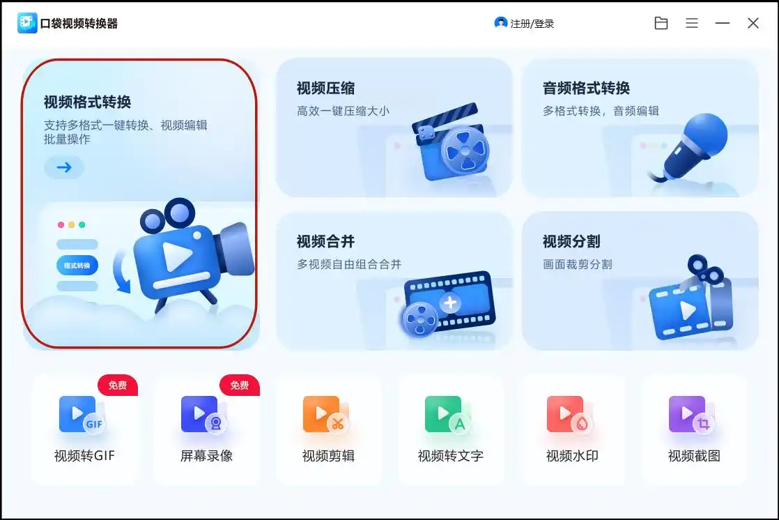 步骤一:打开软件后,你会看到主界面上有几个功能选项,直接点击“视频转换”模块。