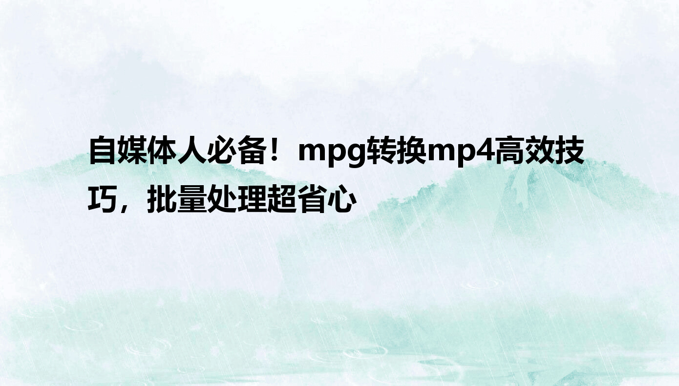 在当今数字化时代,视频格式转换已成为许多用户处理多媒体内容的常见需求。无论是为了在移动设备上播放旧式摄像机拍摄的MPG文件,还是为了适应短视频平台的格式要求,将MPG转换为MP4都是一个实用且必要的操作。然而,许多用户在选择转换工具时,往往面临兼容性、画质保持和操作简便性等挑战。本文将从专业角度出发,深入探讨MPG与MP4格式的区别,并详细介绍多种转换方法,包括在线工具、桌面软件以及视频编辑应用的集成功能。帮助用户根据自身需求选择高效可靠的解决方案,确保转换过程安全、便捷且不影响视频质量。
