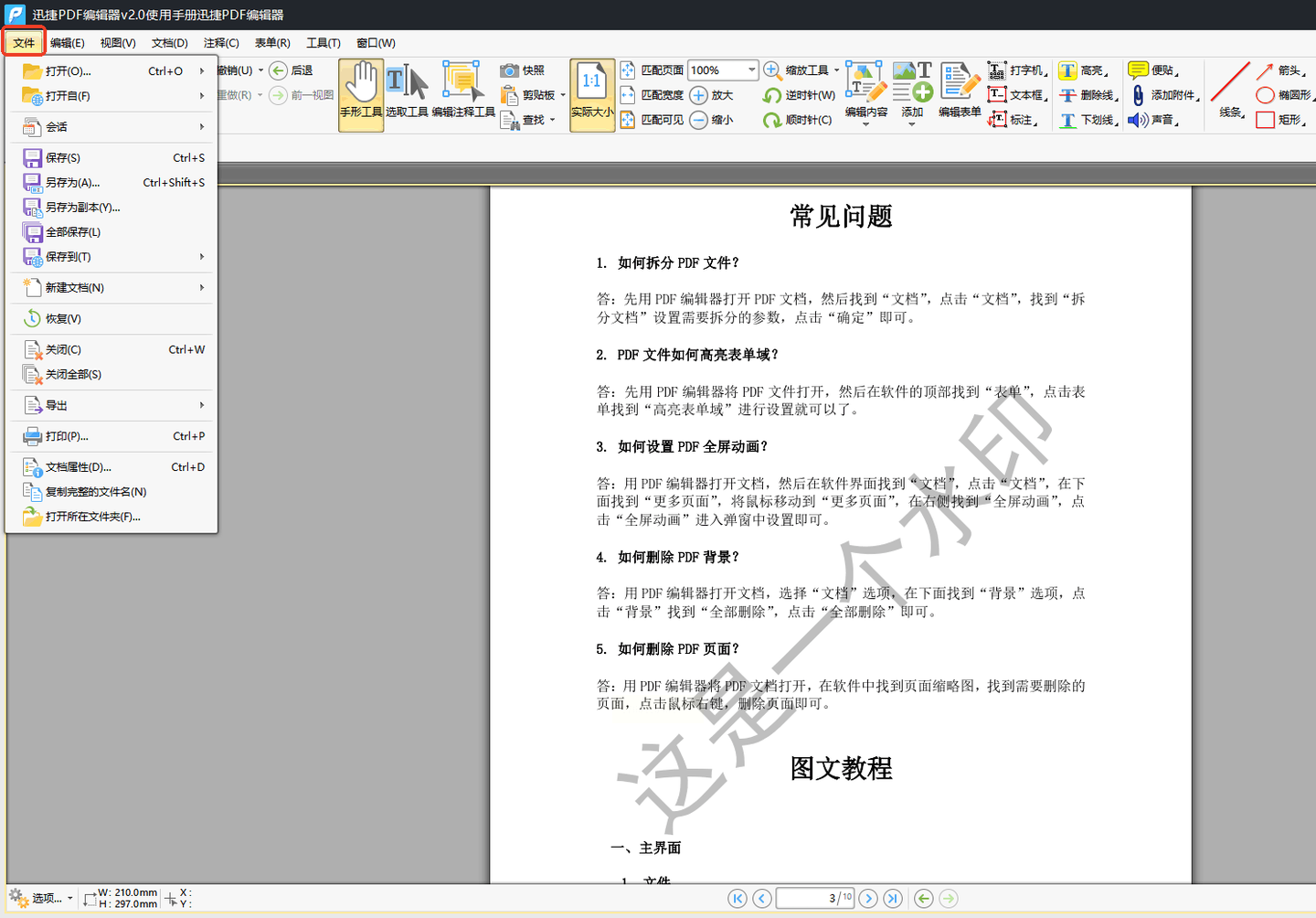 迅捷PDF编辑器是一款功能丰富的本地软件,除了浏览和阅读PDF文档,还支持编辑、注释以及添加水印等多种操作。它的界面简洁,操作直观,适合新手快速上手。