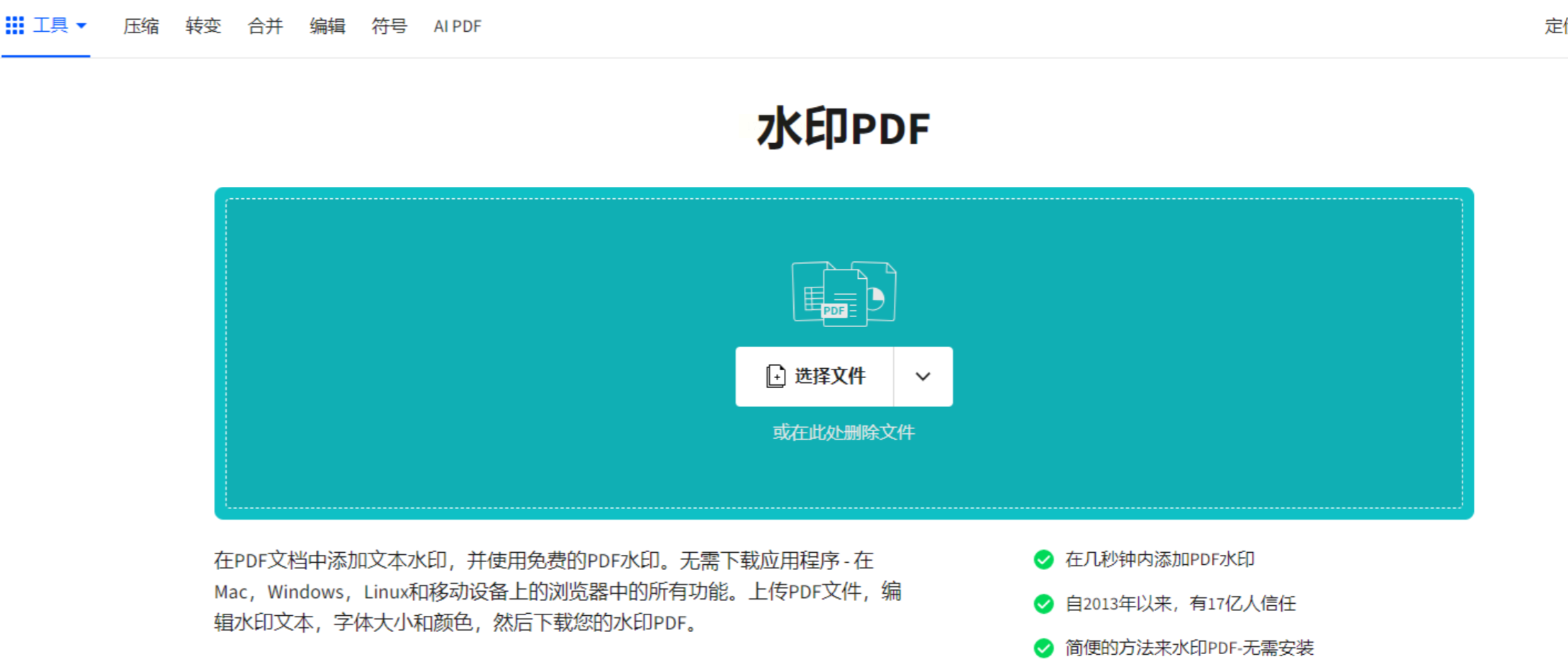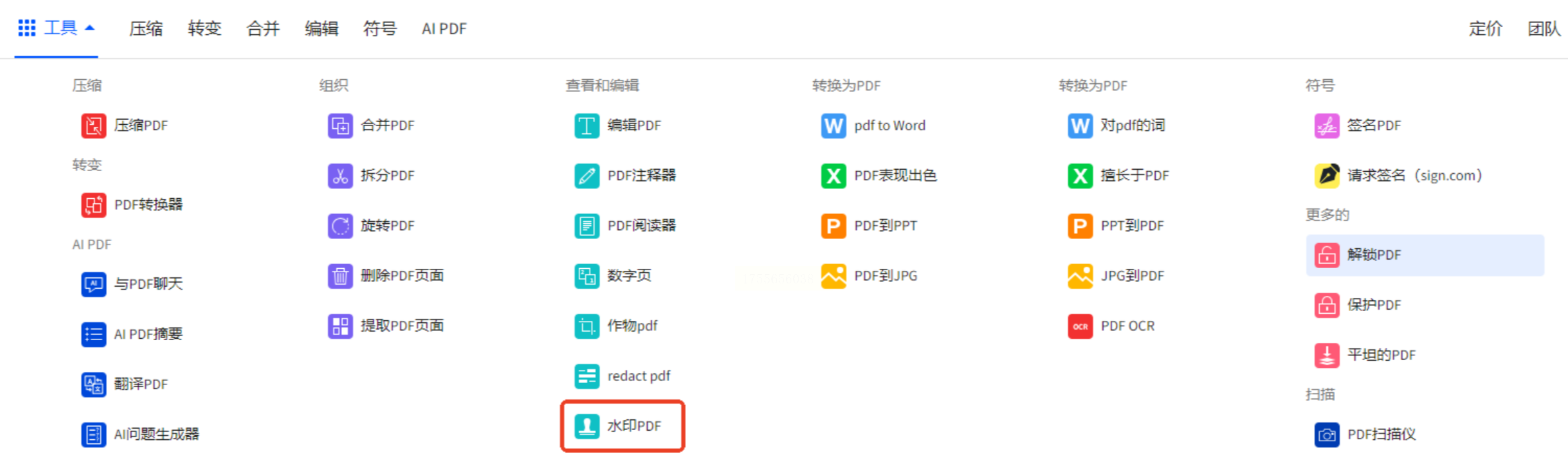 2. 打开APP,它的主功能一般是处理图片,但通常也支持PDF。找到“PDF工具”或类似入口,然后选择“添加水印”。
