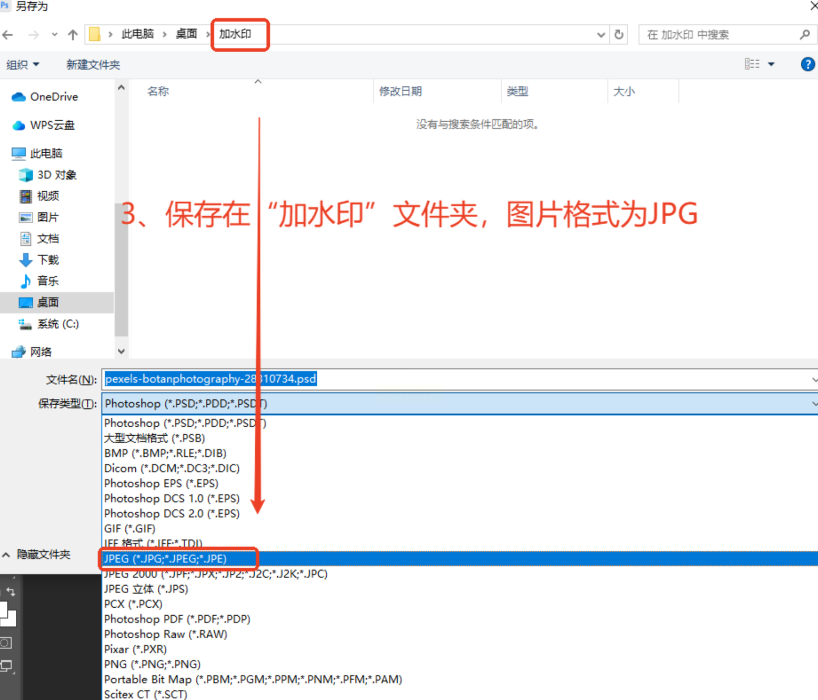 随后打开一张图片,使用文字工具或放置图像图层的方式添加水印,调整其位置、大小、透明度等属性。完成后,按 `Ctrl+Shift+S` 另存为JPG格式,保存至“已处理图片”文件夹,关闭图片但不保存更改。