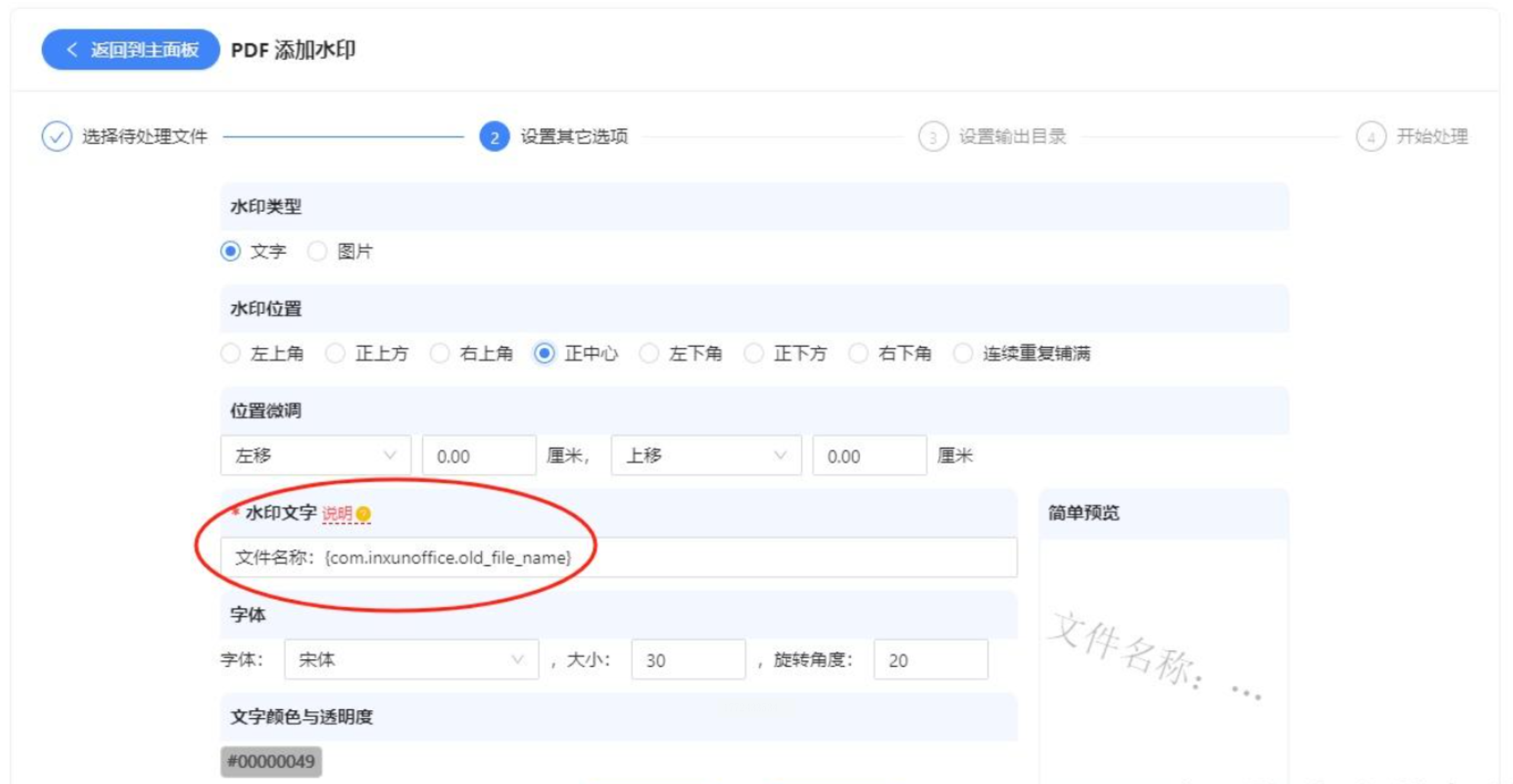 2. 批量命名水印:如果需要“文件名+部门”作为水印,直接在设置里勾选“文件名作为水印”,系统会自动提取文件名,适合多版本文件管理。