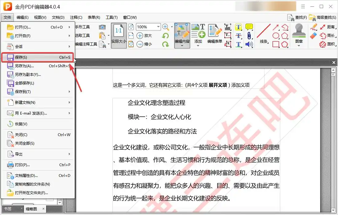 2. 找到水印功能:点击顶部菜单栏的「页面管理」,下拉菜单里就能看到「水印」选项。