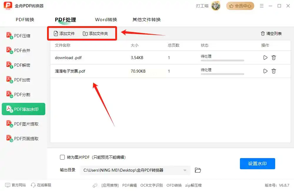 步骤二:通过"添加文件"或拖拽方式导入PDF(支持多文件同时添加)