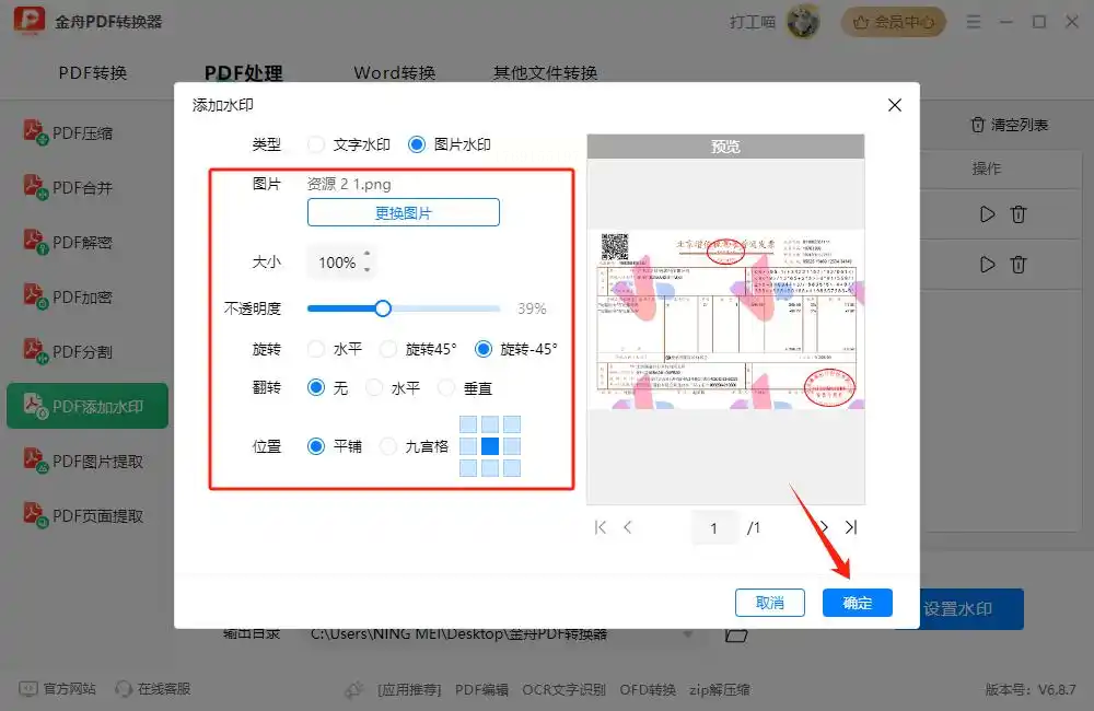 - 旋转角度:文字水印可设15°-30°更自然