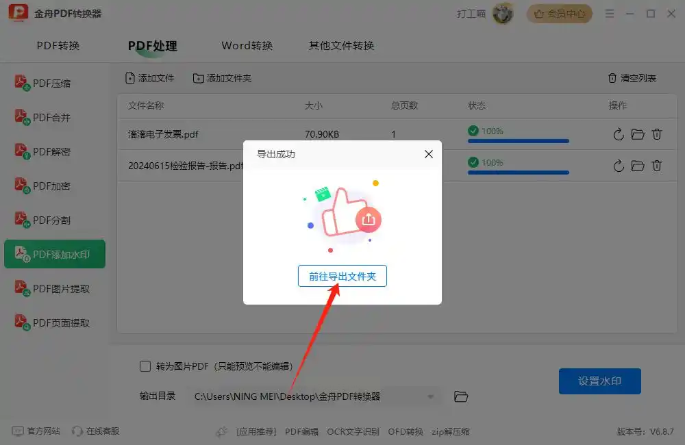 步骤六:完成后在指定文件夹查看结果,批量处理可同时添加不同水印