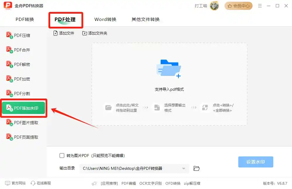 步骤一:打开软件,在首页选择"PDF加水印"分类