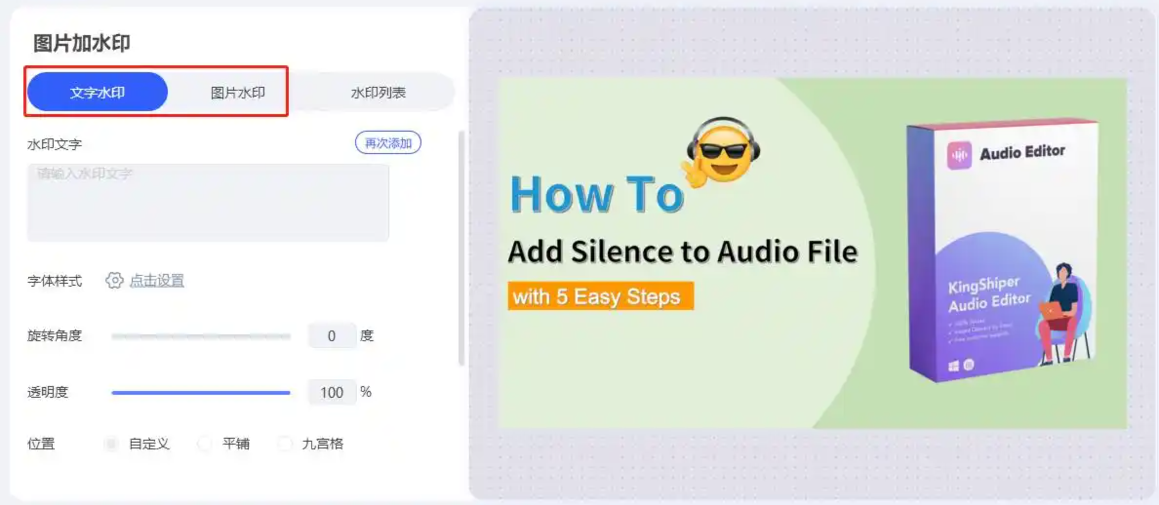 - 位置:可手动拖动水印到任意位置,也可选择固定位置(如右下角)