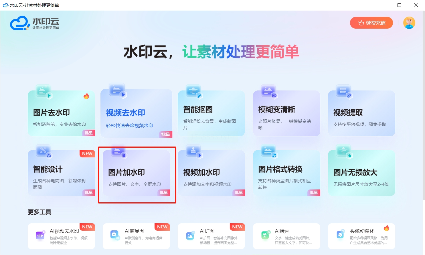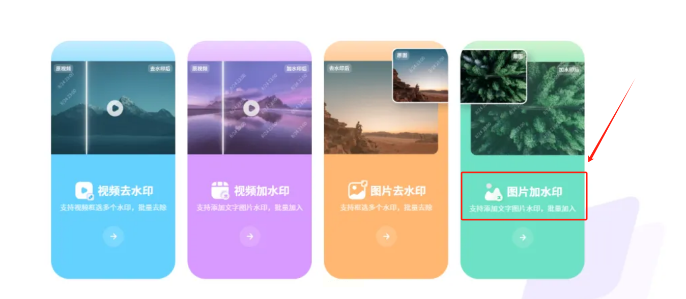 1. 在电脑上启动“水印云”软件(或访问其在线版本),选择“图片加水印”功能。