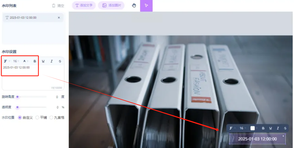 有时候,水印不仅仅是版权标识,更是信息的一部分。比如摄影爱好者想标注拍摄时间,或者记录某个特殊时刻。