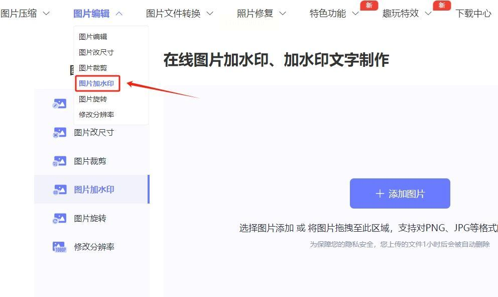 1. 打开在线工具首页:在浏览器中输入工具网址,进入首页后,找到“图片加水印”的功能入口,点击进入。