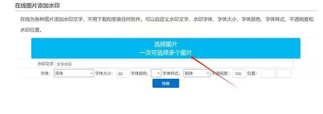 3. 选择水印类型:这里可以选择“文字水印”或“图片水印”。如果是文字水印,输入文字内容,设置字体、颜色、大小、透明度、旋转角度等;如果是图片水印,点击“选择水印图片”,上传你的logo或其他图片,调整大小和位置。