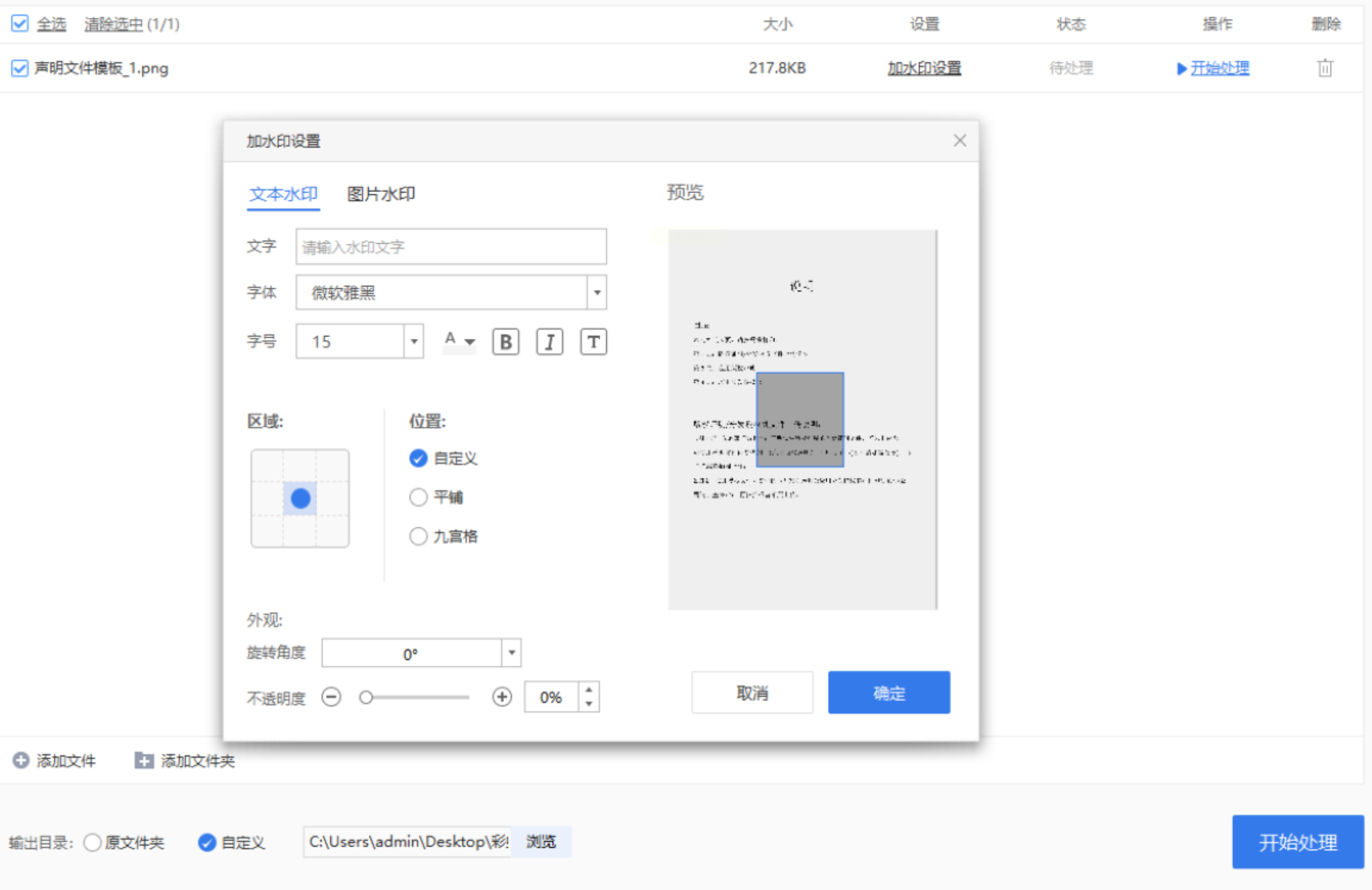 - 位置与排列:支持水平居中、垂直居中、自定义坐标等定位方式,批量处理时可选择“随机分布”避免水印重叠。