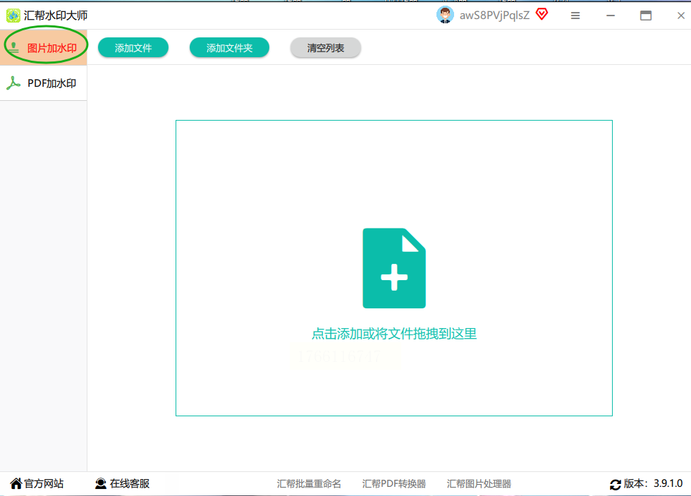 打开软件后,左边有一排功能选项。你得找到“图片加水印”这个按钮,点它。这就进入了核心操作区。