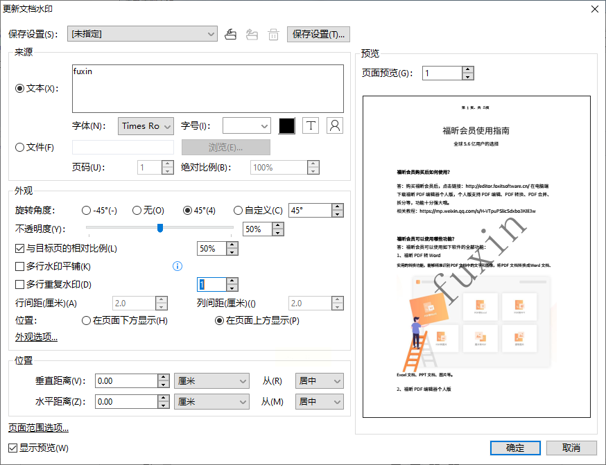 福昕PDF编辑器功能全面,适合需要灵活调整水印细节的场景,比如调整水印在特定页面出现。