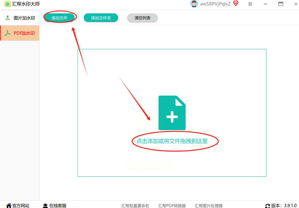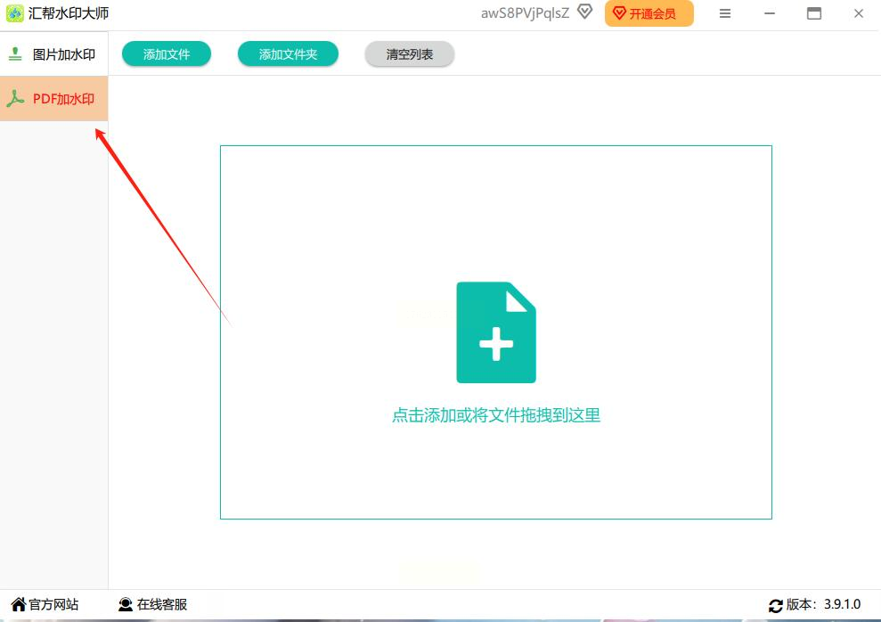 1. 打开软件并选择功能:双击打开汇帮水印大师,在主界面左侧菜单栏找到“PDF水印”选项,点击进入功能页面。