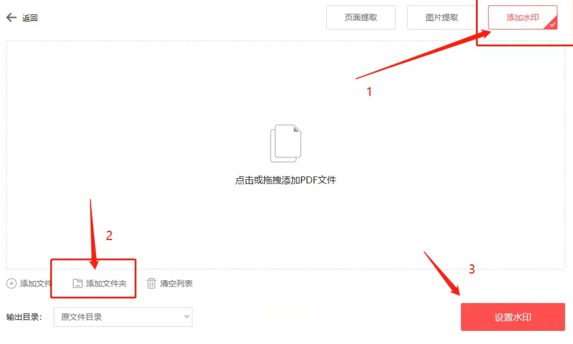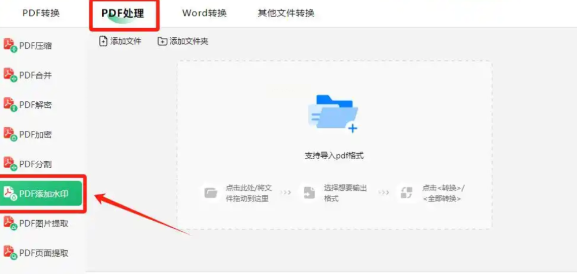 点击"添加文件"按钮,支持单个文件添加或直接拖拽多个文件到窗口。如果需要处理文件夹里的所有PDF,还能直接点击"添加文件夹"一次性导入,非常适合批量操作。