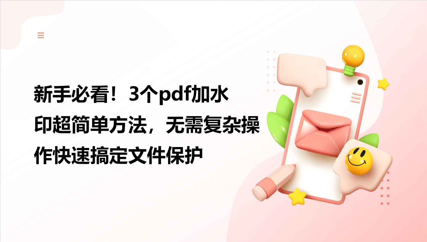 在日常办公中,PDF文件几乎成了我们传递信息的"万能载体"。但有时候,我们需要给这些文件加上水印来保护版权,或者在分享时明确来源。无论是文字水印还是图片水印,操作起来其实并不复杂。今天就给大家分享几个简单好用的PDF加水印方法,让你告别繁琐操作,快速搞定文件保护。