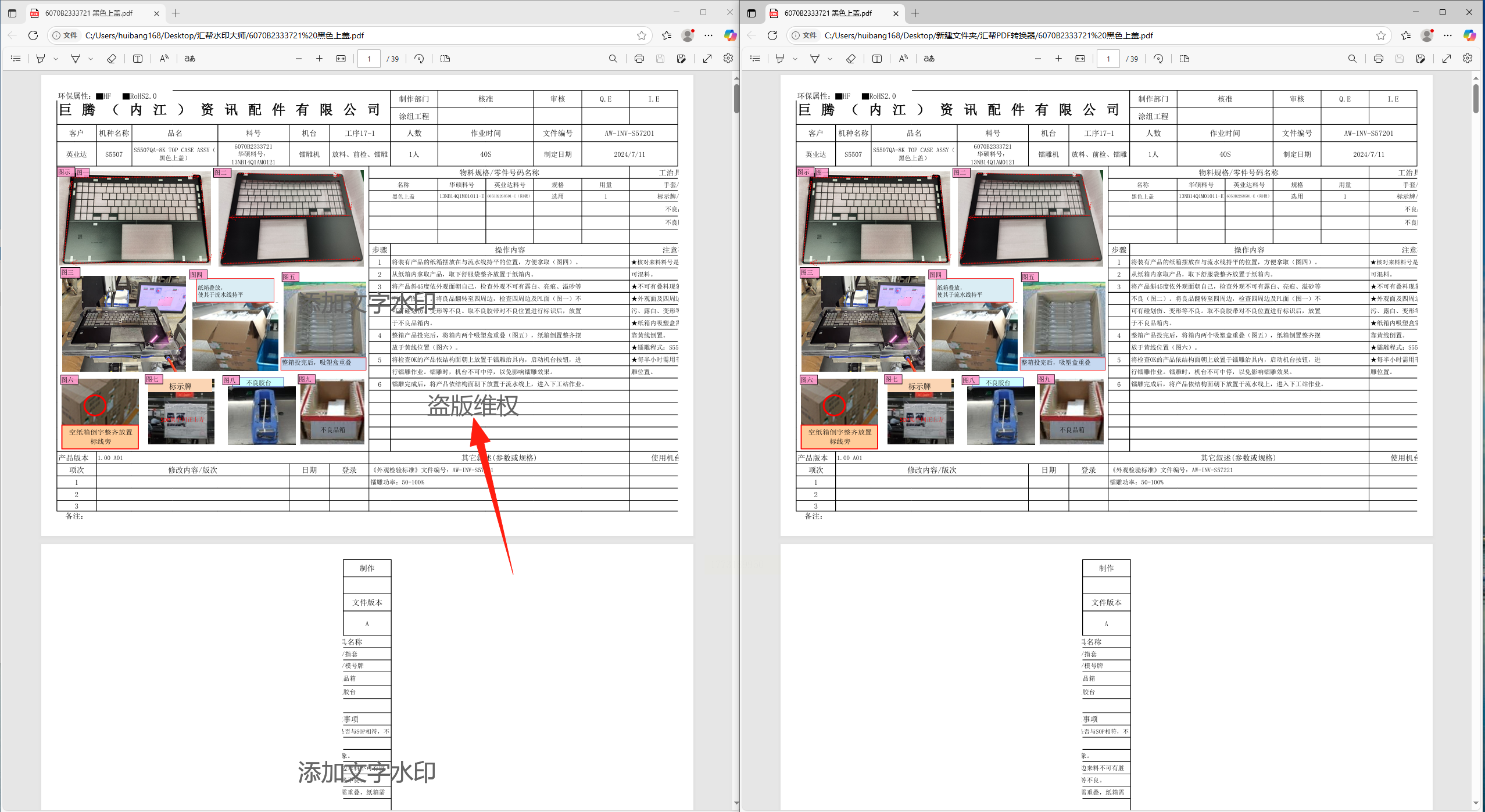 适用场景:把PDF转成网页版展示时,顺手加水印(比如做产品手册)