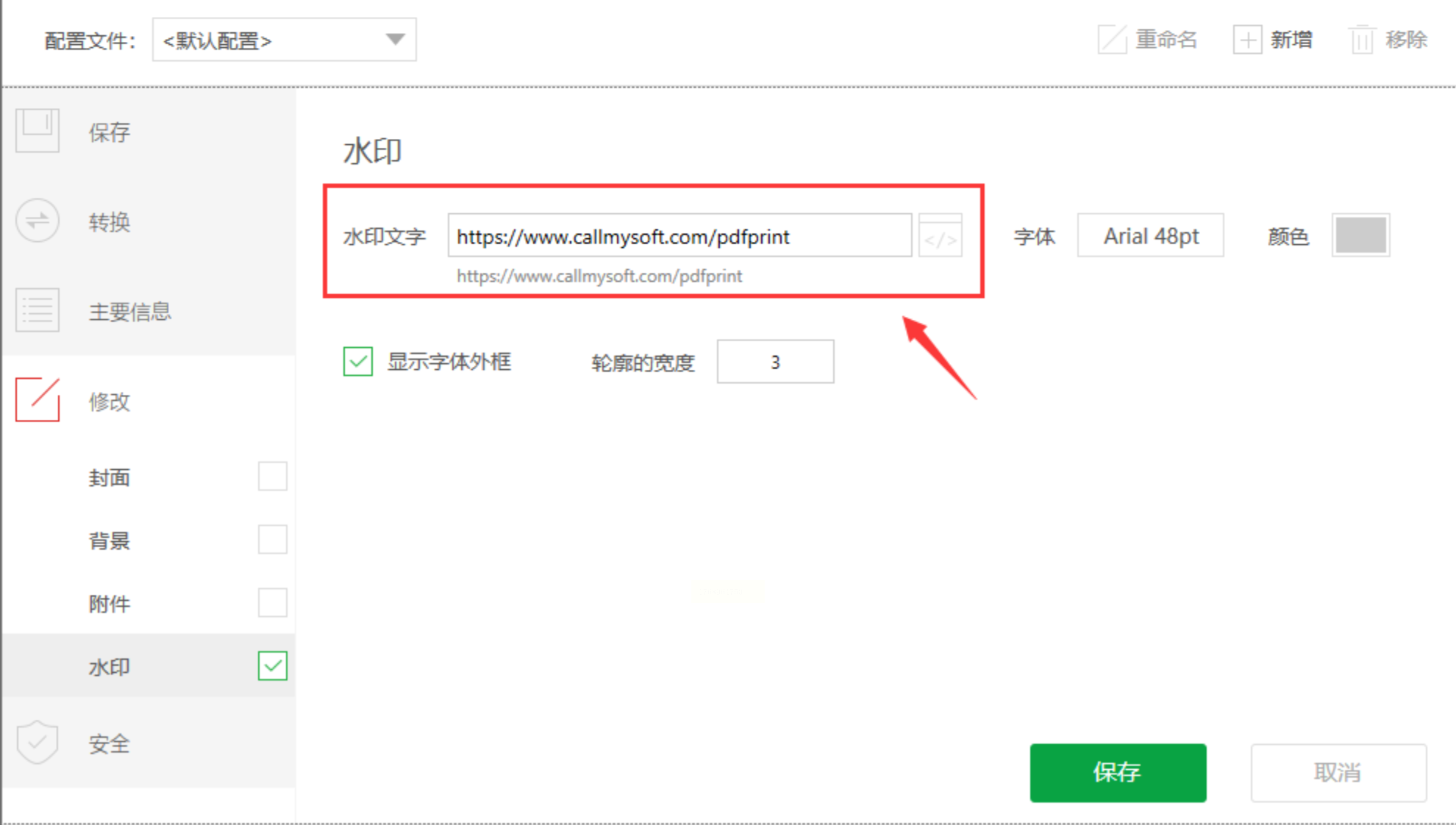 3. 配置水印:选择"修改"→"水印"选项,输入文字内容(如"草稿"),设置字体、颜色和透明度。