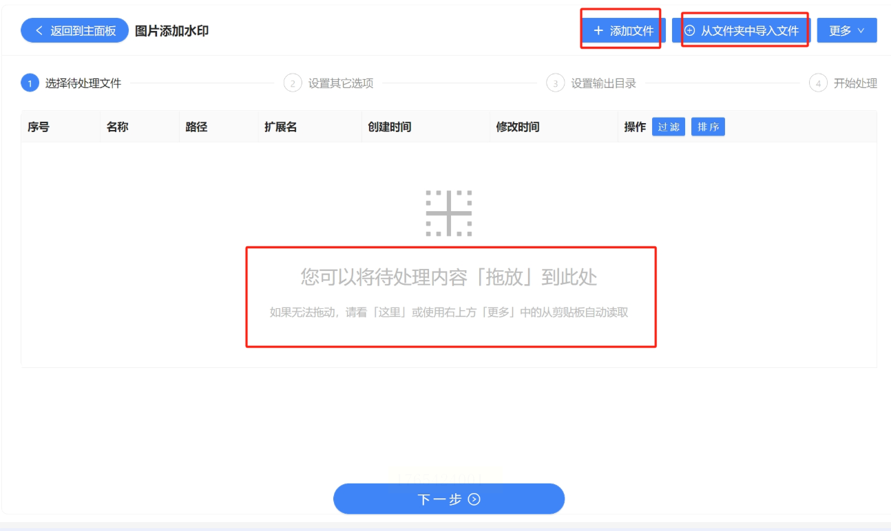 2. 导入图片:打开软件后点击「文件水印」→「图片添加水印」,通过三种方式导入图片: