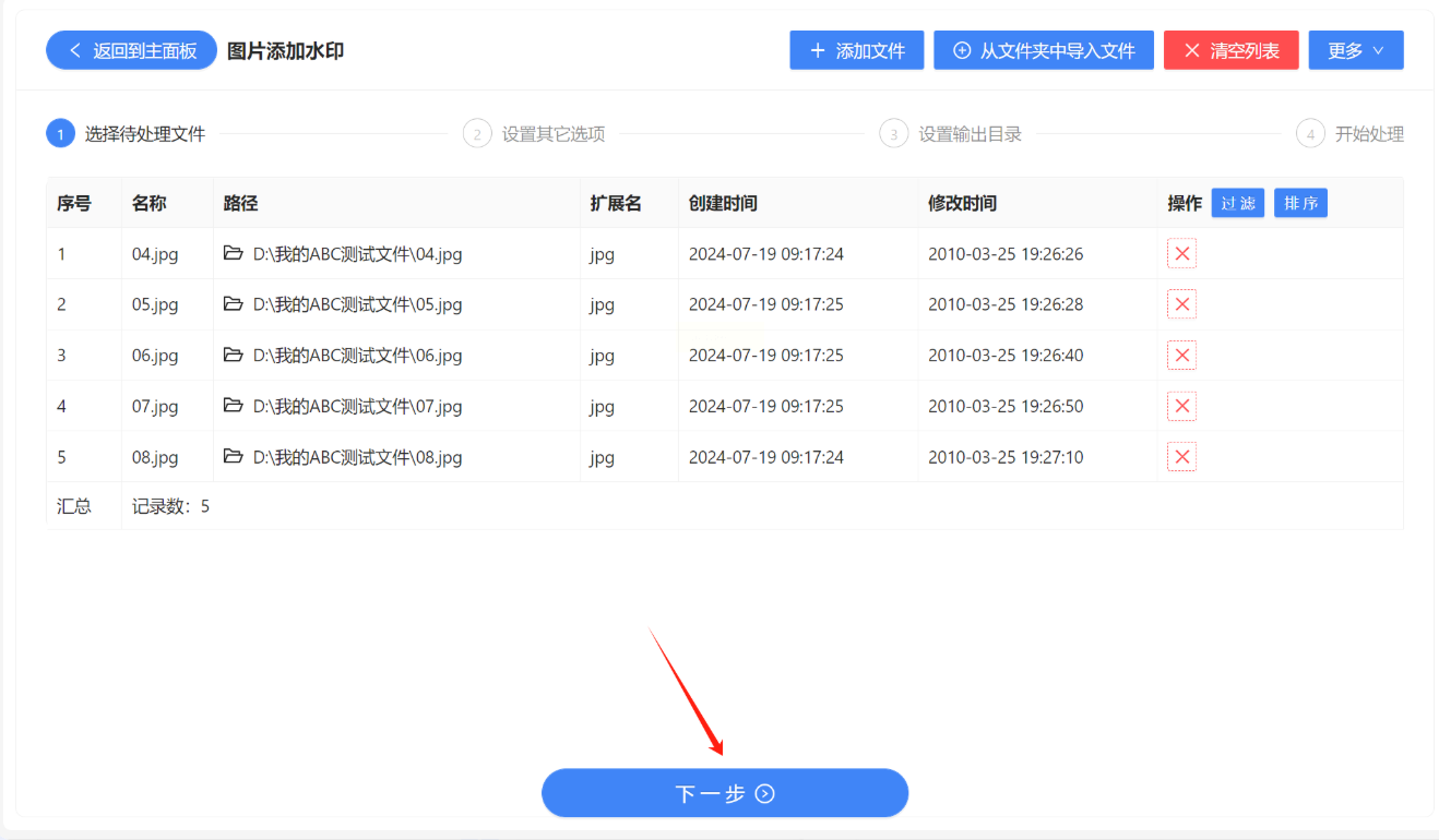 - 添加文件:点击按钮选择单张或多张图片