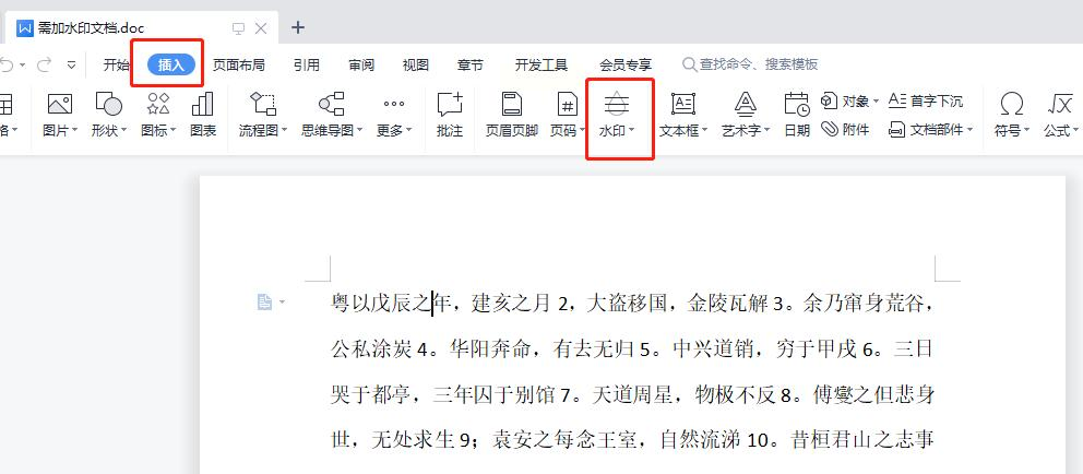 2. 进入插入菜单:在Word文档顶部的菜单栏中,找到"插入"选项卡,点击进入。在插入菜单中,会看到"水印"相关的选项。