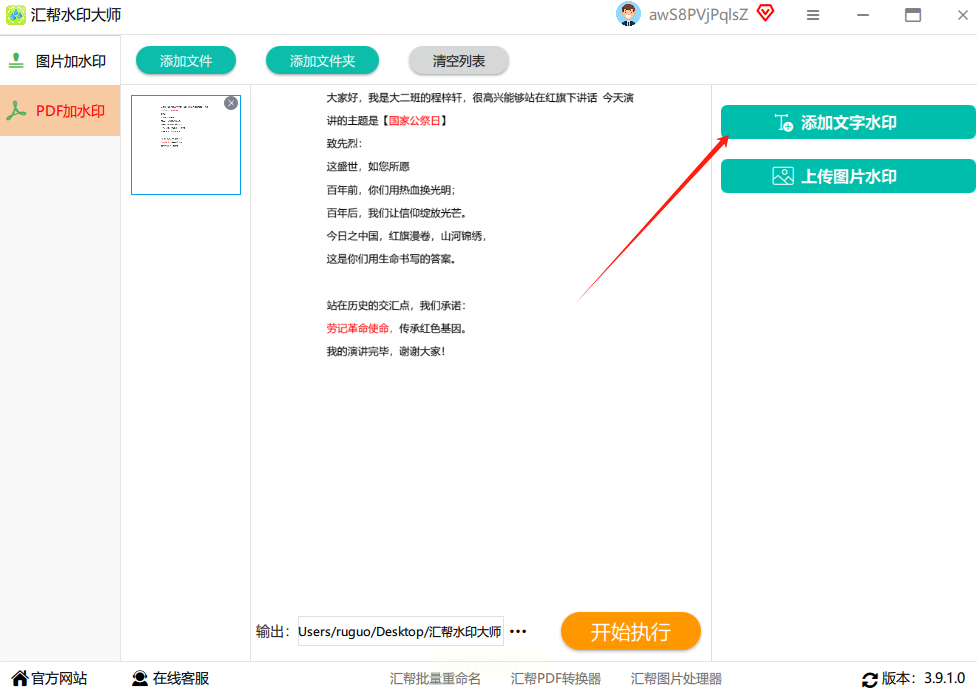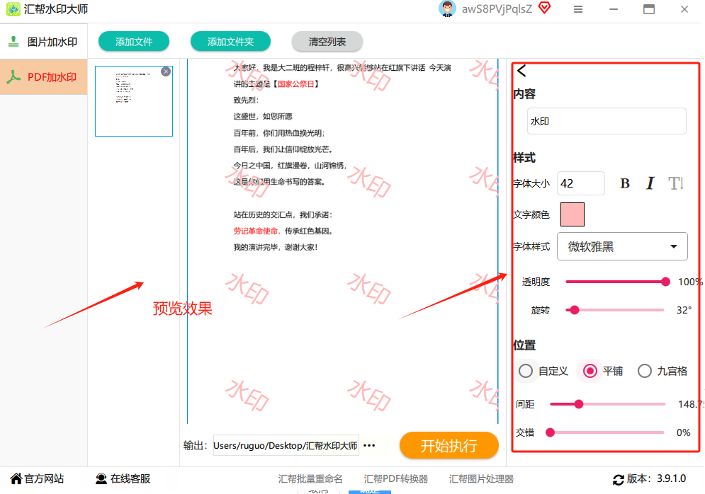 5. 选择保存路径并生成:设置完成后,选择一个保存路径(建议新建一个专门的文件夹来存放处理后的文件,方便后续查找),点击"开始执行"按钮。软件会自动处理所有导入的文件,稍等片刻就能完成批量水印添加。