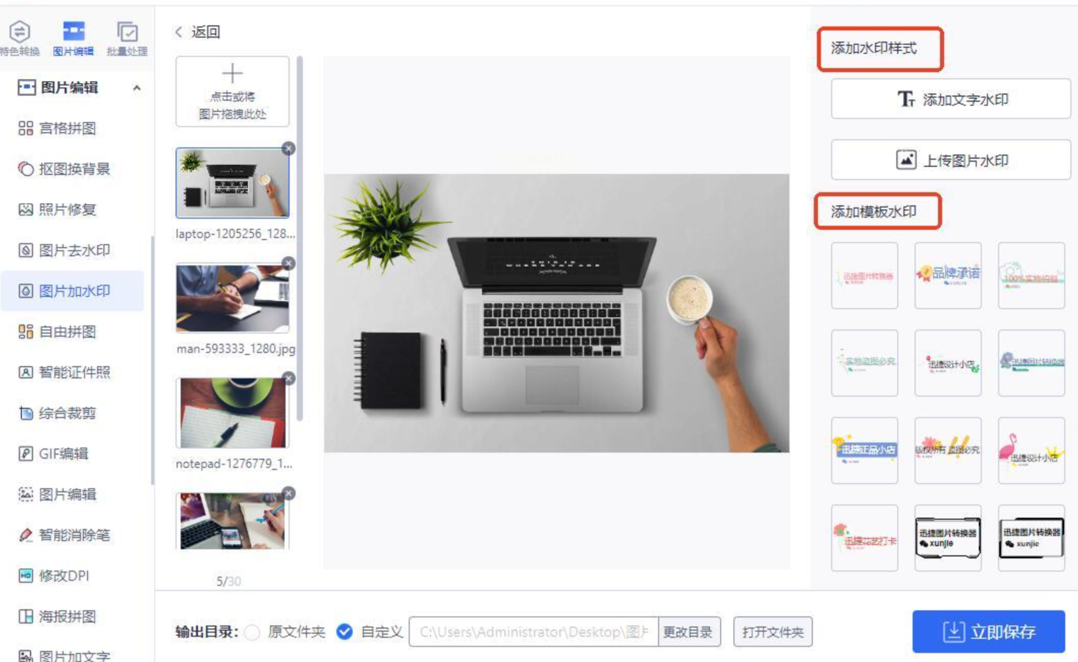 点击底部「输出设置」,选择输出格式(建议保留PNG原格式,防止压缩失真),输出路径选择本地文件夹(如“桌面/水印图片”)。