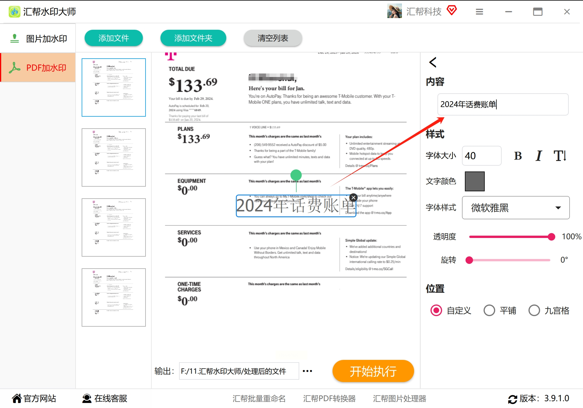 8. 开始加水印:点“开始执行”,软件自动给你处理,等进度条走完,去输出文件夹找新文件,完美!