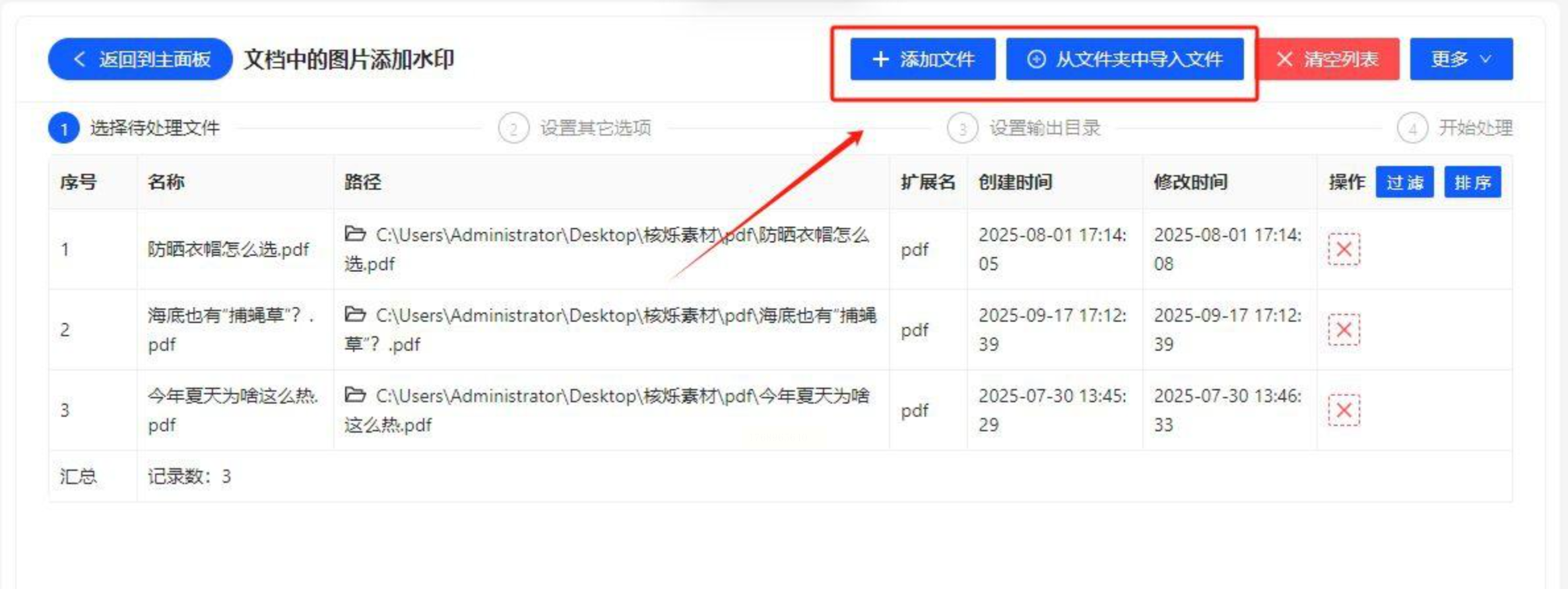 2. 导入文件:点“添加文件”,或者直接把PDF拖进去,一次能加好几个文件,不用一个个选。