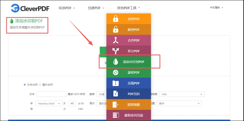 1. 打开CleverPDF官网,找到“PDF加水印”功能;