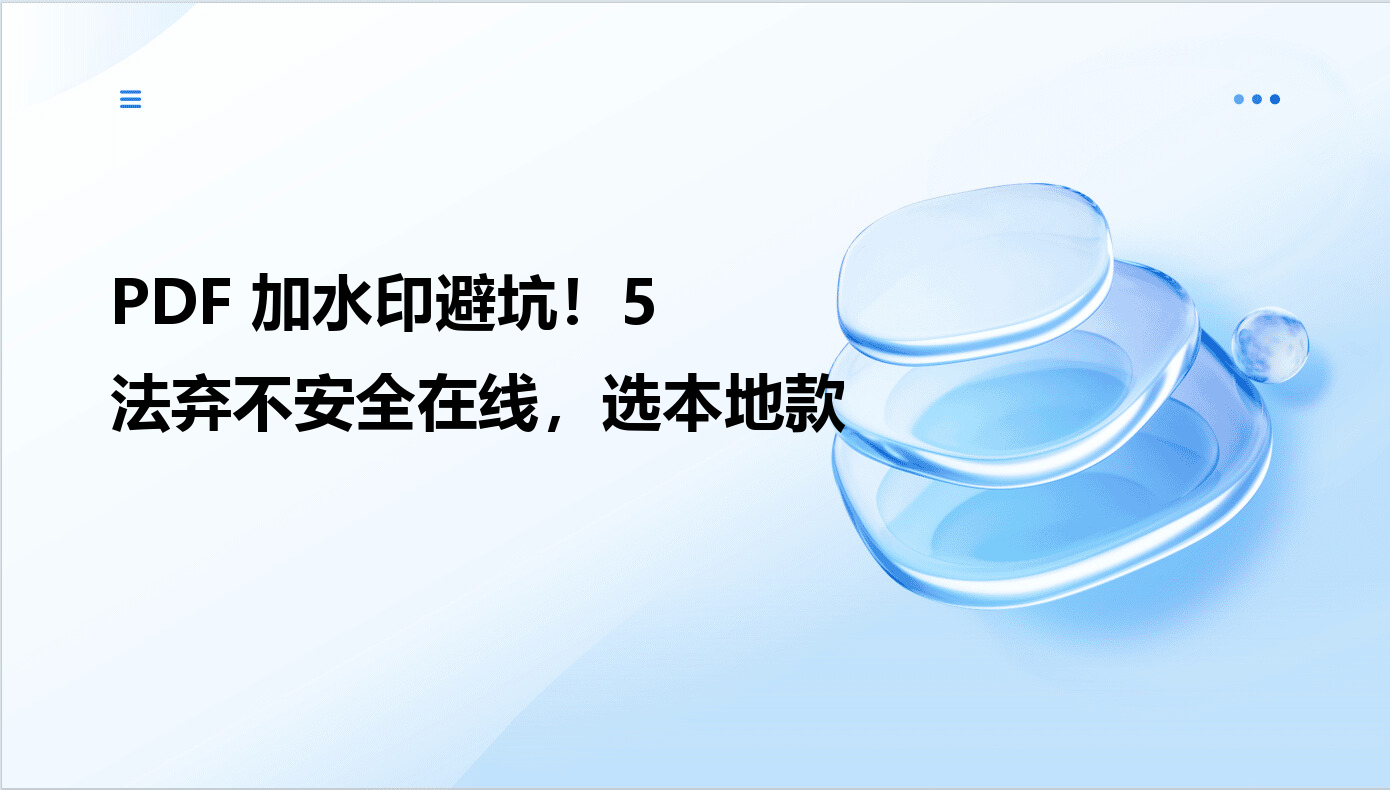 咱们先来说说为什么要给PDF加水印。除了最基本的防盗和版权声明之外,水印其实超有用。比如你可以用“草稿”水印来区分文件版本,用“机密”水印来提醒阅读者注意保密,甚至可以用水印来标注项目名称或日期,方便后续管理。而且你知道吗?合适的水印不仅不会遮挡内容,反而会让你的文档看起来更专业。