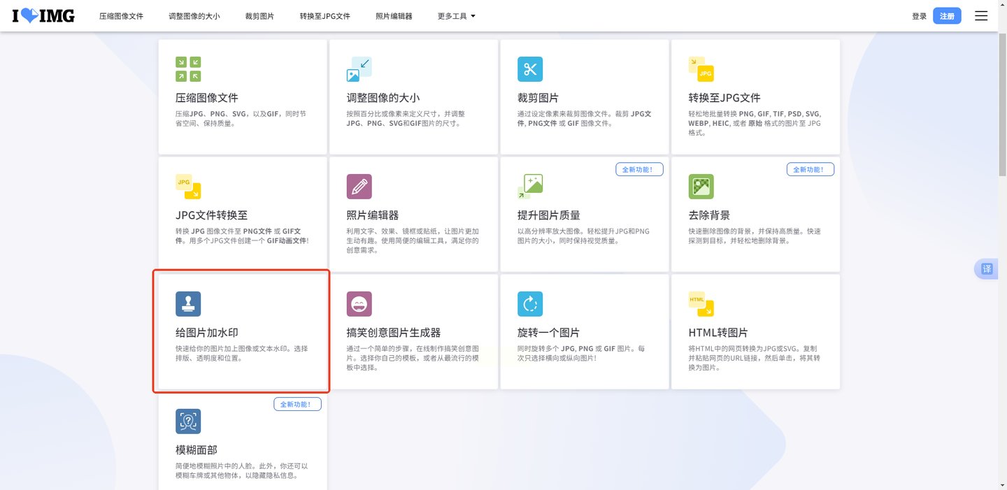 步骤一:在浏览器中访问该在线工具的网站,首页上找到“添加水印”或类似的功能入口。