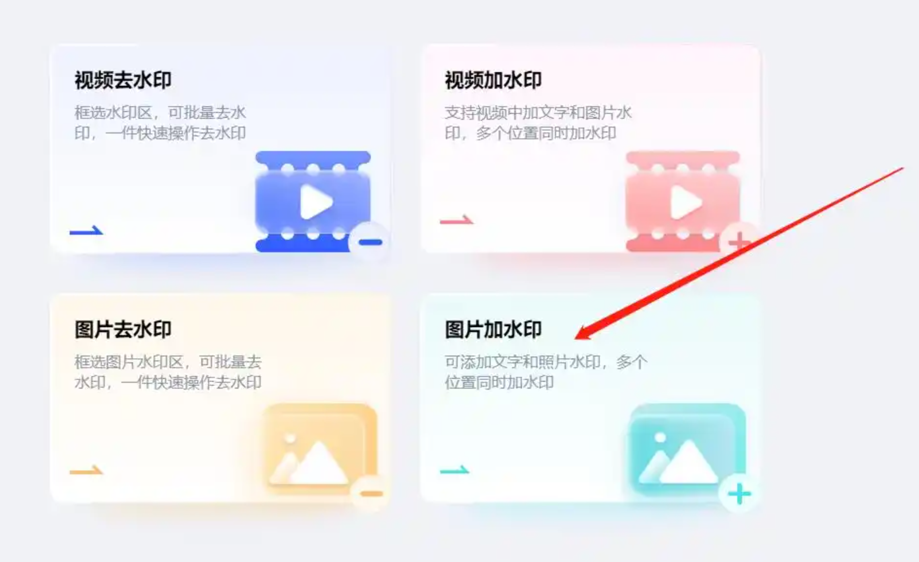 步骤一:启动软件,在首页的众多功能中一眼就能看到“图片加水印”,点击进入核心操作页面。